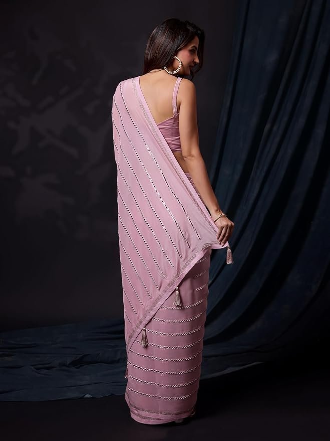 Women's Georgette Sequence Work Saree with Unstitched Blouse Piece